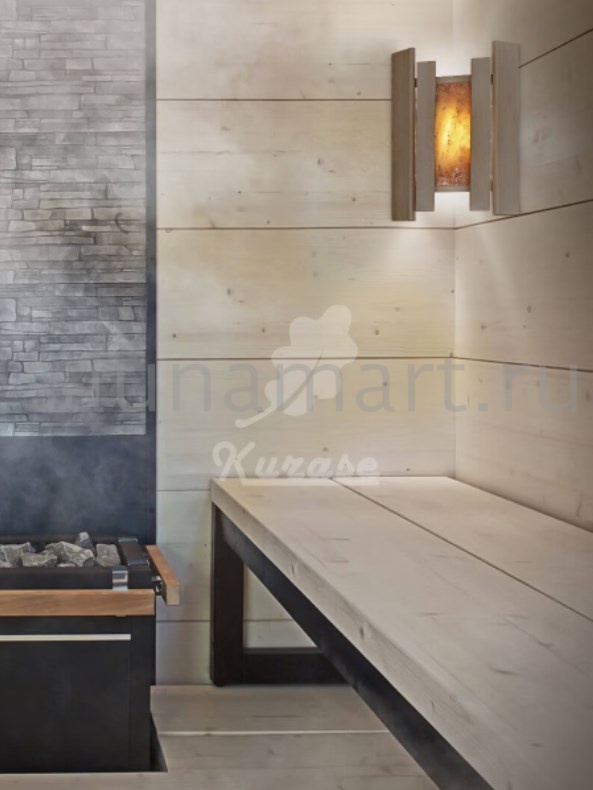 Натуральные материалы, интересный дизайн, приятная фактура древесины и уникальный природный рисунок соли – сделают абажур главным элементом декора бани, создающим неповторимую атмосферу. Для изготовления абажура используется древесина ольхи премиального качества, а так же декоративная вставка из 100% натуральной гималайской розовой соли, создающая приятный теплый свет.