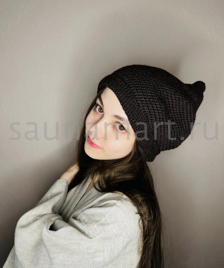 Банная Шапка Шоколад. коллекция АРТ Натюрель. цвет чёрный. состав 30% лён. 70% тонкорунная шерсть