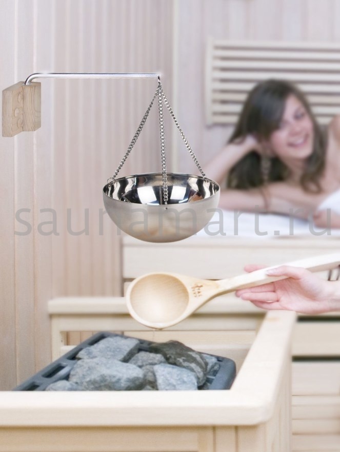 Она заполняется солью или различными ароматическими компонентами (травами, эфирными маслами, разведенными в воде) и подвешивается на специальное крепление к стене над раскаленными камнями печи или к потолку.