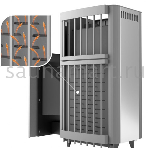 Площадь теплоотдающих поверхностей для нагрева камней больше на 25-30 %.