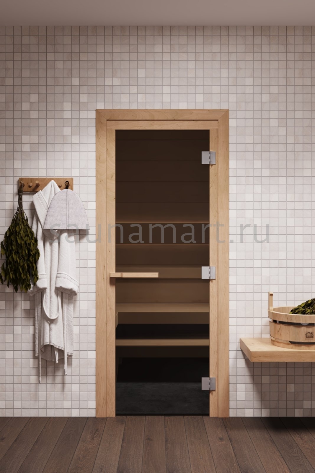 Дверь из закаленного стекла великолепно вписывается в парную любой бани и сауны.