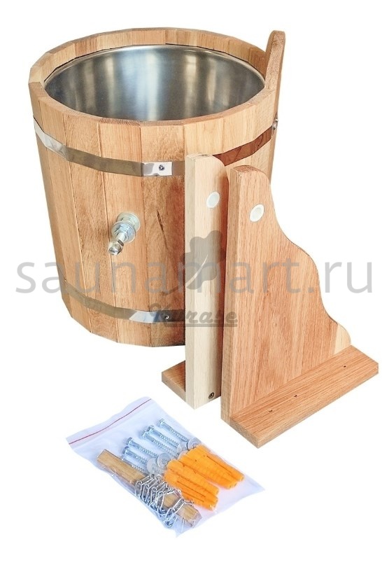 Обливное устройство для бани и сауны. Объем 12 литров. Материал изготовления - древесина дуба. Внутренняя вставка из нержавеющей стали предотвращает появление грибка и ржавчины.
