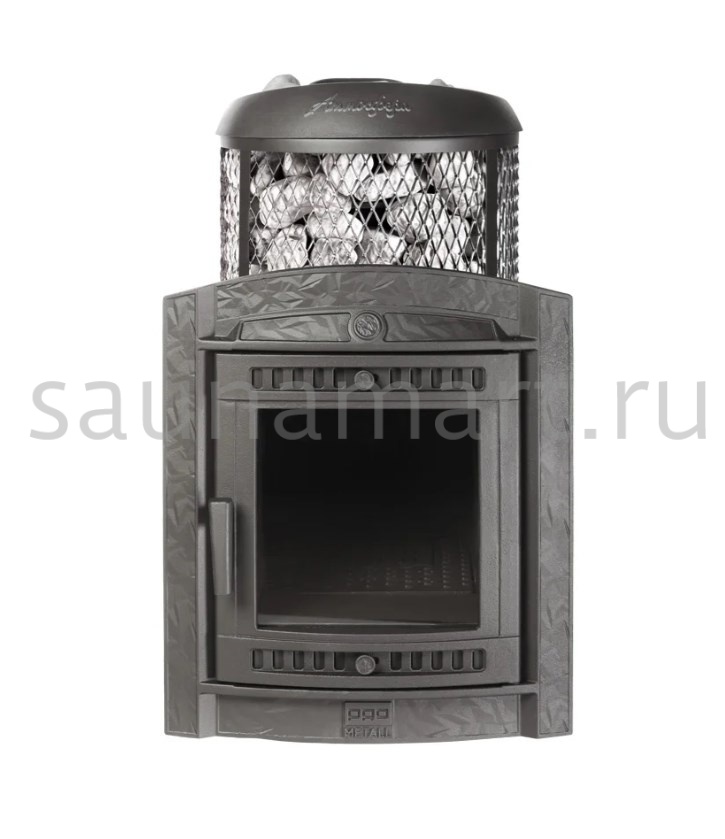 Модель с комбинированной облицовкой из нержавеющей сетки и ламелей. Особенность модели - открывающаяся дверь с ламелями. Это оригинальное решение обеспечивает быстрый прогрев парной.