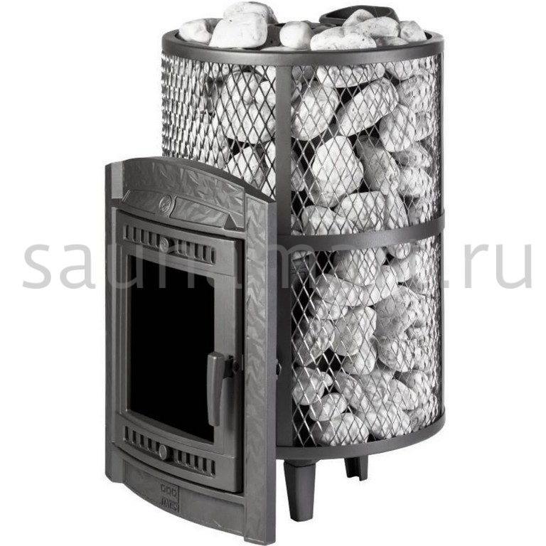 Компактная и экономичная модель с коротким топливным тоннелем. Кожух печи изготовлен в виде сетки из стали и полностью заполняется природными камнями, обеспечивая высокую динамику нагрева парильного помещения.