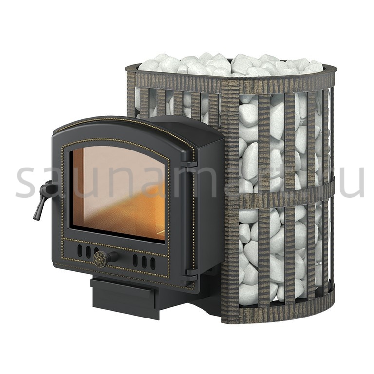 Банная чугунная печь Легенда Ковка 16 (224) укомплектована чугунной герметичной дверцей Везувий 224 с жаропрочным стеклом «SHOT ROBAX». Конвекционно-вентилируемый кожух "Ковка" изготовлен из металлической текстурированной полосы, покрашенной термостойкой краской и покрытой патиной «Бронза».