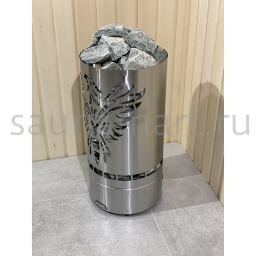 Цилиндрическая конструкция с высокой загрузкой камня (дает возможность согреваться от камня, получая мягкое тепло),