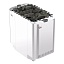 Если вы хотите купить надёжную и многофункциональную модель для установки в коммерческой парной, следует обратить внимание на электрокаменку Super Savonia Combi SAVC-150NS-Z. Мощности данной печи хватит для быстрого нагрева помещения объёмом 13-23 кубических метров. Super Savonia Combi SAVC-150NS-Z выполнена по принципу открытой каменки и вмещает в себя до 75 кг камней. Эта модификация поистине имеет расширенные возможности за счёт встроенного парогенератора. С его помощью можно легко добиться эффекта настоящего турецкого хамама в парной. Добавив в резервуар парогенератора свой любимый травяной настой, вы сможете насладиться ароматерапией. Парогенератор оснащён индикатором уровня воды. Внешняя часть и каркас электрокаменки произведены из нержавеющей стали. Внутри печь усилена оцинковкой. Каменка Super Savonia Combi SAVC-150NS-Z имеет напольную установку. Ножки печи регулируются. Подключение производится к сети 380В. Температура и таймер работы электрокаменки устанавливаются заранее при помощи удобного выносного пульта управления. Прежде всего вам понадобится приобрести положенный объём камней и пульт управления.