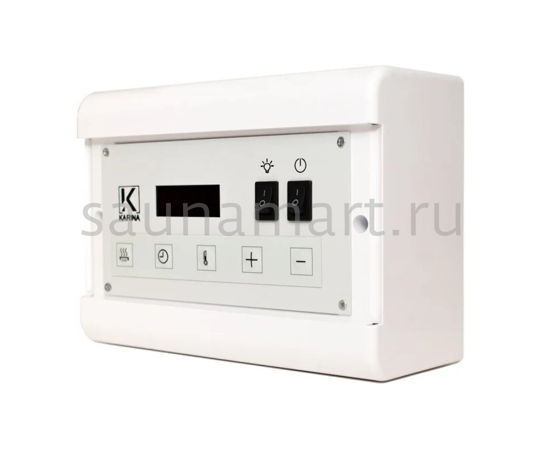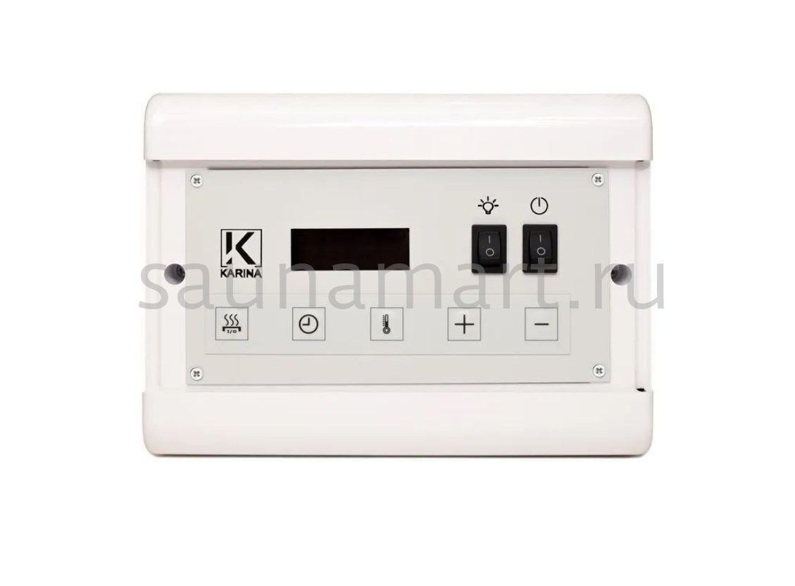Пульт управления Karina Case C18 White Ca-18kW-Wh предназначен для электрокаменок с мощностью до 18 кВт. Пульт можно устанавливать только снаружи парильного помещения. При достижении температуры 125 °C прибор отключается в аварийном режиме.