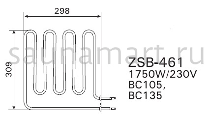Harvia ТЭН для электрокаменки Vega Pro BC105/Vega Pro BC135 1750W артикул ZSB-461