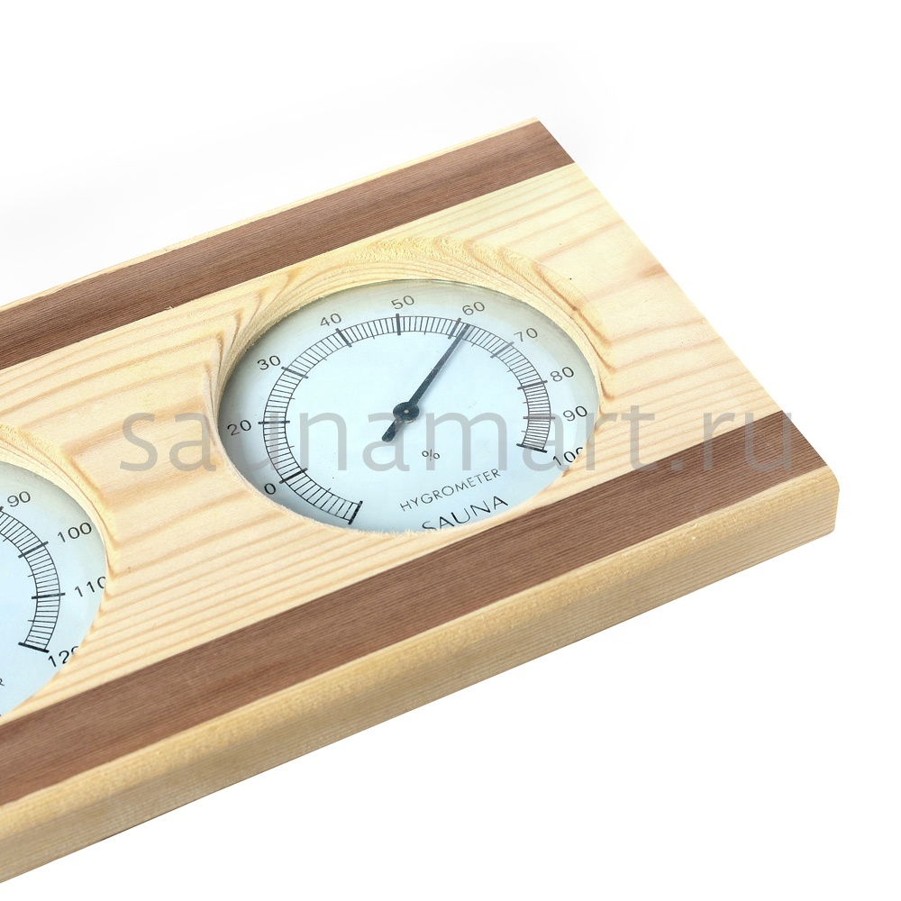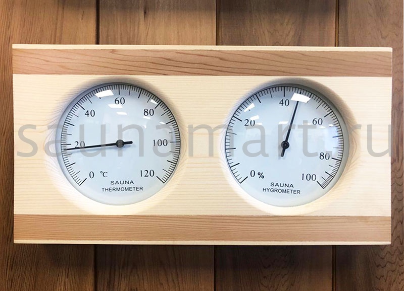 Термогигрометр имеет оригинальную круглую форму. В широкой рамке из древесины кедра находится циферблат, который сообщит о температуре воздуха. Данный прибор прекрасно подойдёт для использования в парной. Максимально допустимая для измерения температура составляет 120 градусов Цельсия. Этого максимума достаточно для комфортных банных процедур. Нагнетание в парном помещении большей температуры нежелательно, так как может быть опасным для здоровья. Благодаря универсальному дизайну термометр станет прекрасным дополнением любого интерьера.