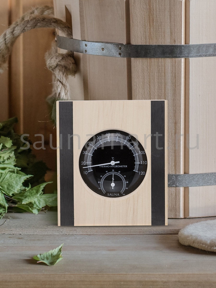 Термогигрометр стальн вставки квадтраный осина AP-054BW-01 Kurase