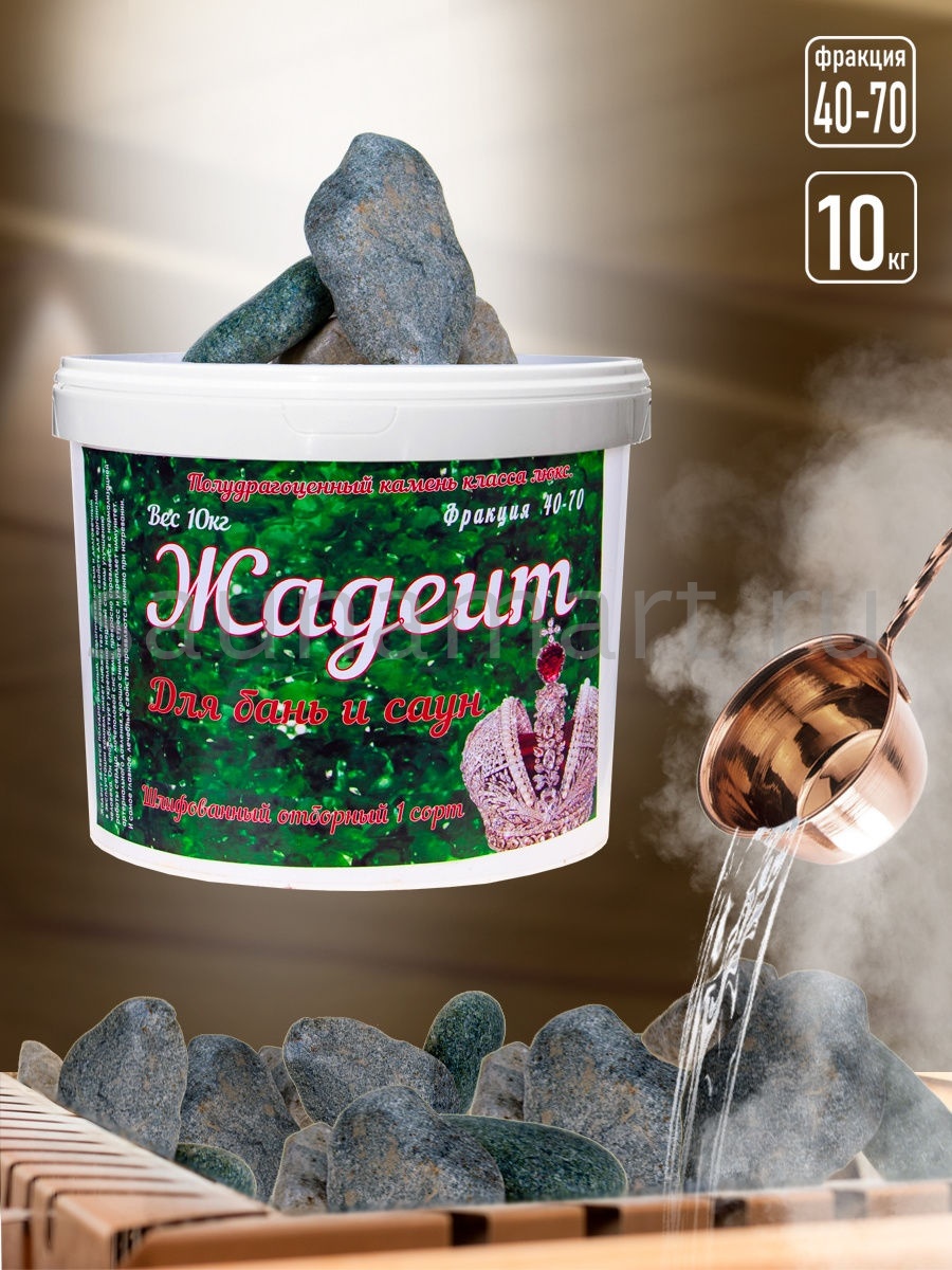 Применение жадеитовых камней в Вашей печи принесёт несомненную пользу для здоровья. Помимо этого, камни выглядят очень эстетично и красиво. При контакте с водой, жадеит выделяет небольшое количество метакремниевой кислоты, тем самым, наделяя получающийся пар целебными свойствами. Посещение парной, где используются эти полудрагоценные камни, окажет положительный эффект на Вашу кожу, кровеносную систему и общее самочувствие. Колотые камни прекрасно подходят для заполнения резервуара печи в сауне. Жадеит содержит в десятки раз меньше тяжелых металлов, чем его аналоги. Если Вы окатите жадеит горячей водой, то вы заметите уникальную особенность: зеленый цвет камня резко собирается в центр, а затем постепенно камень возвращается к своему первоначальному виду. Жадеит позволяет не боясь, лить на него воду часто и много раз. При этом, растрескивания камня опасаться не стоит. При нагреве камня не происходит выделения вредных химических веществ. Шлифованный. 10 кг. Фракция 40-70 мм. Камни дял бани, жадеит, камни из жадеита, колотый жадеит, шлифованный жадеит Применение жадеитовых камней в Вашей печи принесёт несомненную пользу здоровью и удовлетворит Ваши эстетические чувства.