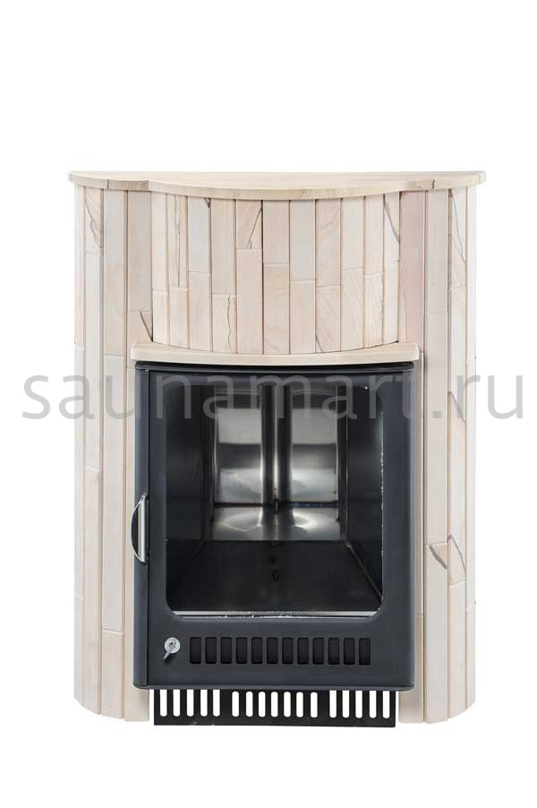 Для печи «Малютка» серии ПФ производитель V?hringer выпускает порталы из натурального мрамора, змеевика и жадеита. Облицовочные материалы поступают на завод в слэбах, заготовки разрезают на пластины, которые затем навешивают на печь.
