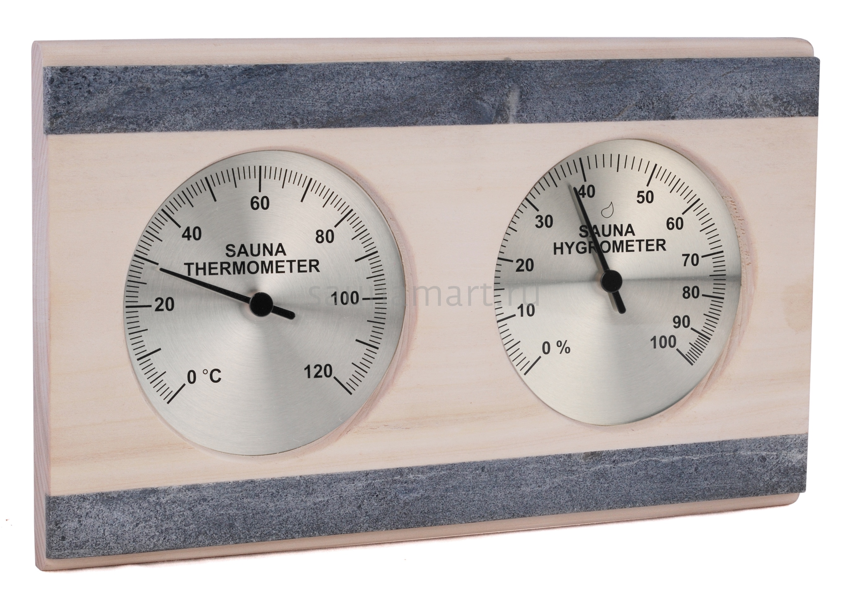 Термогигрометр 282-THRA от компании Sawo имеет классическую прямоугольную форму. Это надежный, практичный и долговечный прибор. Корпус термогигрометра выполнен из осины, очень прочного материала, который не выделяет смолу и не впитывает влагу. Две декоративные полосы, встроенные в корпус, выполнены из талькохлорита. В широкой раме находятся два круглых циферблата под термостойким стеклом. Градуировка шкалы гигрометра варьируется в пределах от 0 до 100 %. Градуировка шкалы термометра варьируется в пределах от 0 до 120 градусов по Цельсию. Предусмотрена возможность калибровки прибора. Термогигрометр SAWO прекрасно впишется в интерьер любой бани или сауны и удачно дополнит интерьер. Термогигрометр Саво подойдет для использования в любом парильном помещении, как в условиях русской бани, финской сауны так и хамама. Помните, чтобы проведённое в парной время оказало благоприятный эффект на здоровье и самочувствие, необходимо тщательно соблюдать температурный режим парения и режим влажности.