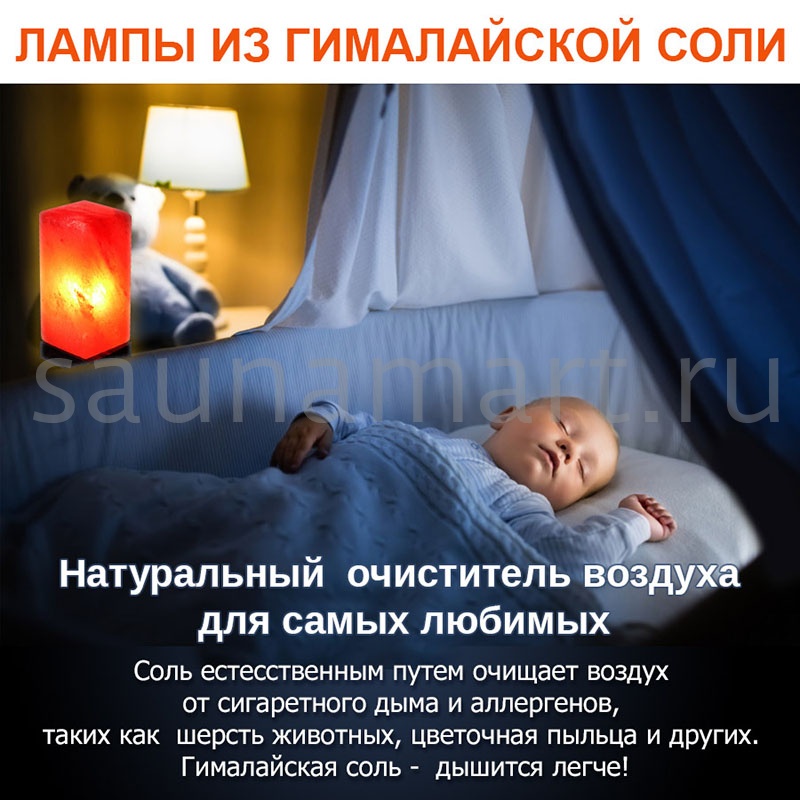 Гималайская лампа при освещении излучает мягкий янтарный свет, а нагретый солевой кристалл испускает отрицательные ионы. Естественно ионизированный воздух создает успокаивающий эффект и улучшает сон. Поэтому солевая лампа – идеальный ночник для детской спальни.
